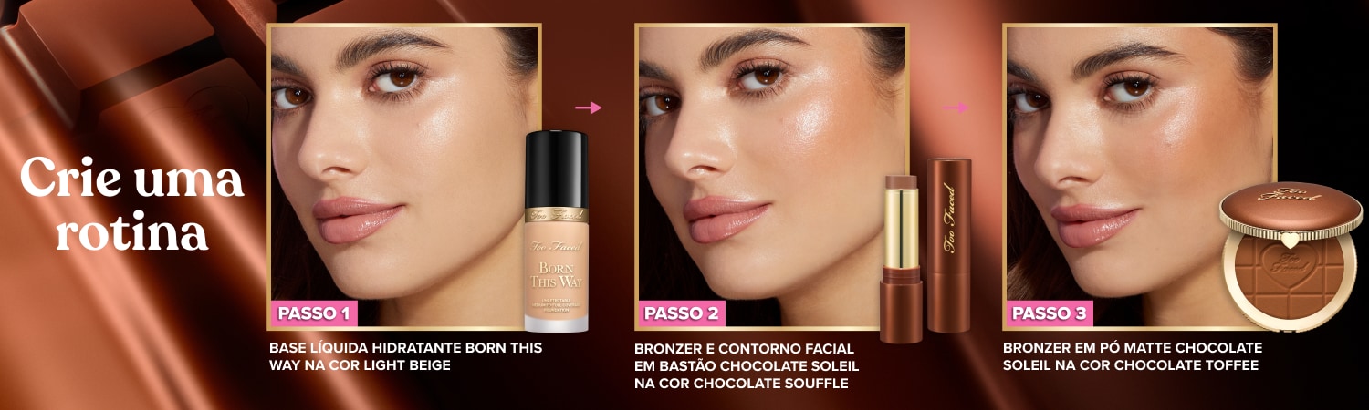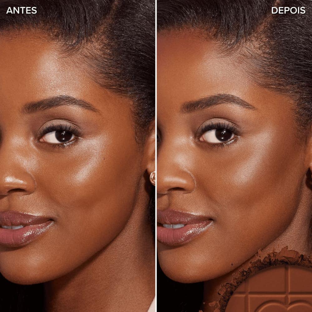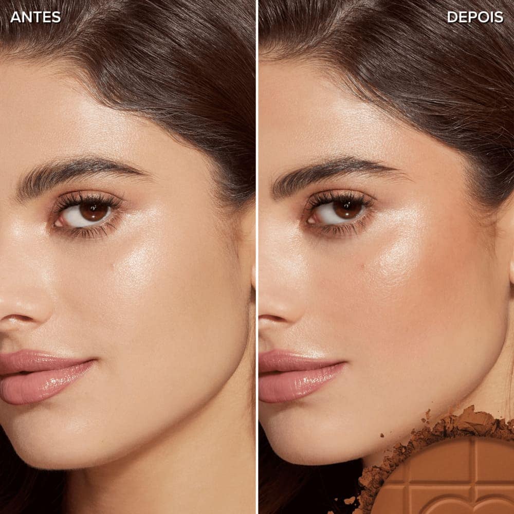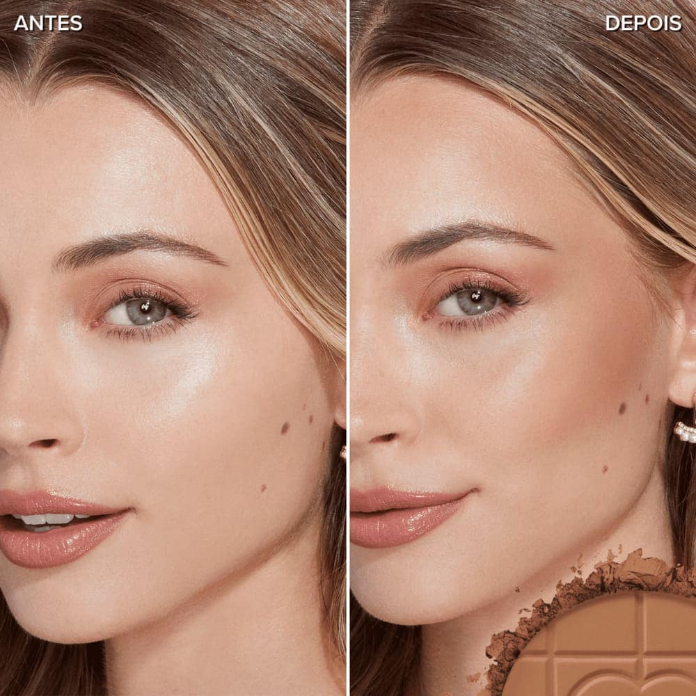 Sim, o Bronzeador em Pó Matte Chocolate Soleil é leve e pode ser aplicado sobre a base ou bronzer cremoso, e sob o blush, iluminador ou pó fixador.