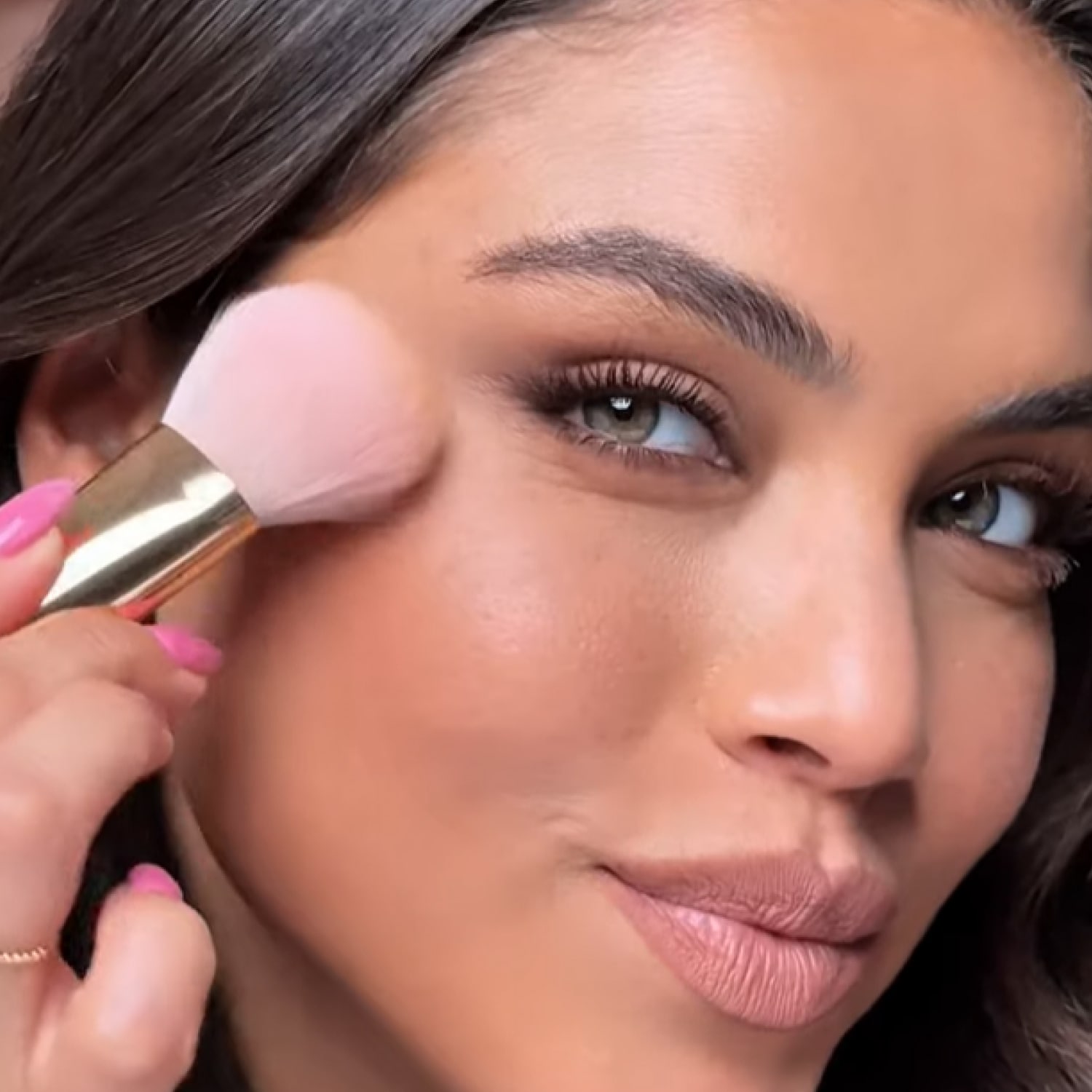 Com um pincel macio, aplique nas áreas onde o sol naturalmente toca o rosto: testa, maçãs do rosto, queixo e pescoço
